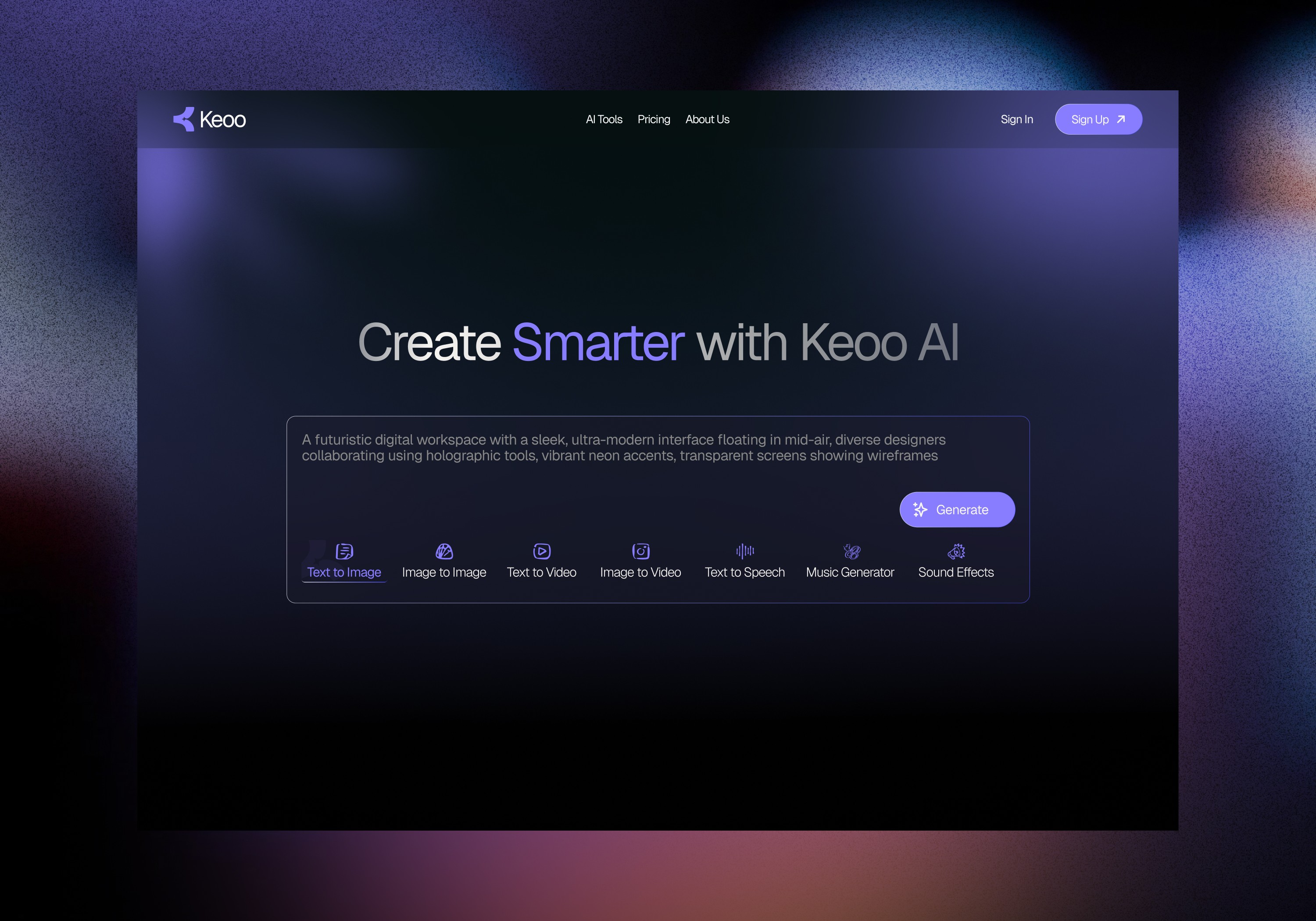 Keoo AI is a platform that helps creators, marketers, and digital professionals generate high-quality media using artificial intelligence. Users can create videos, images, voiceovers, and animations, all with AI-powered tools.
